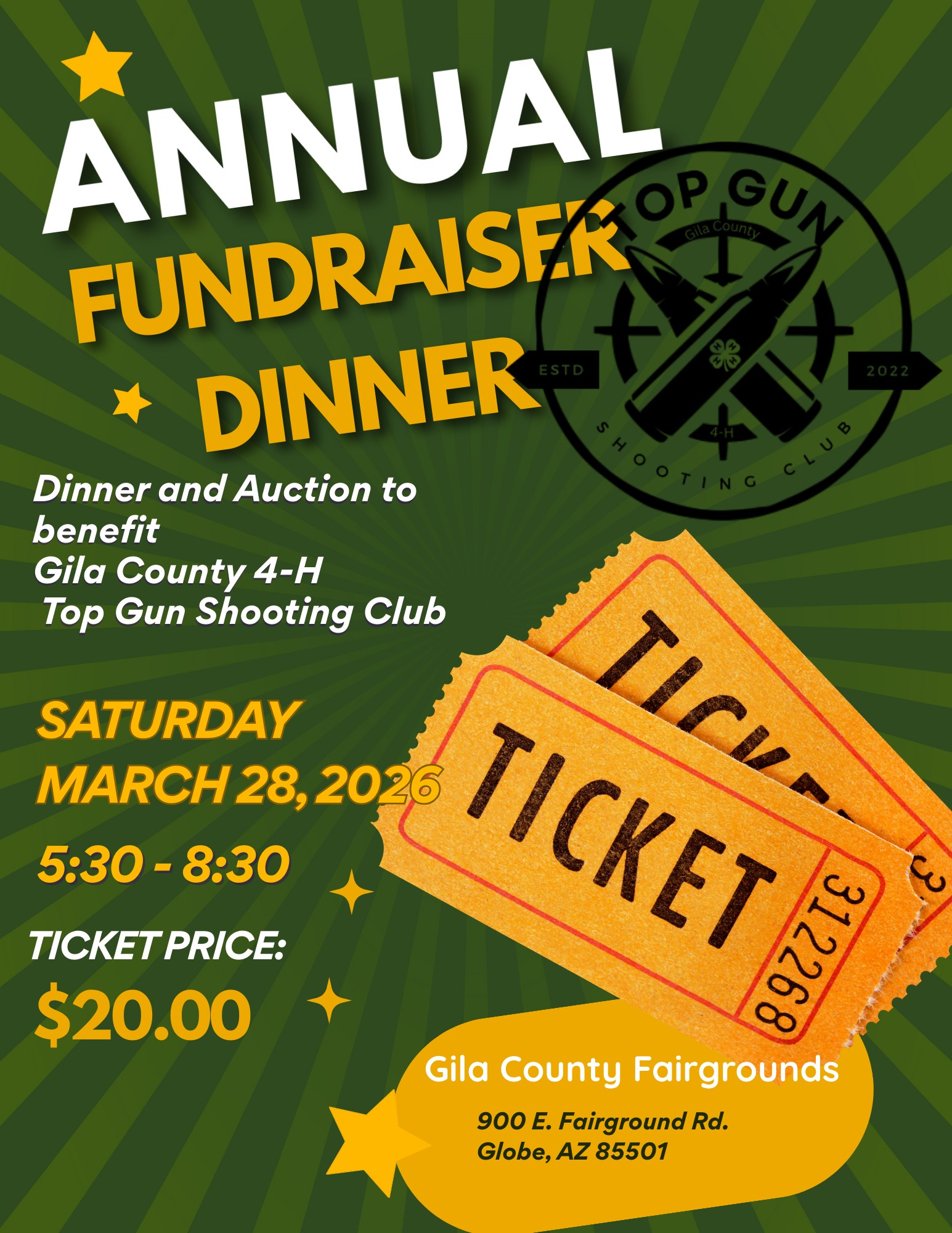 Annual Dinner to benefit the Southern Gila County 4H Top Gun Shooting Club!