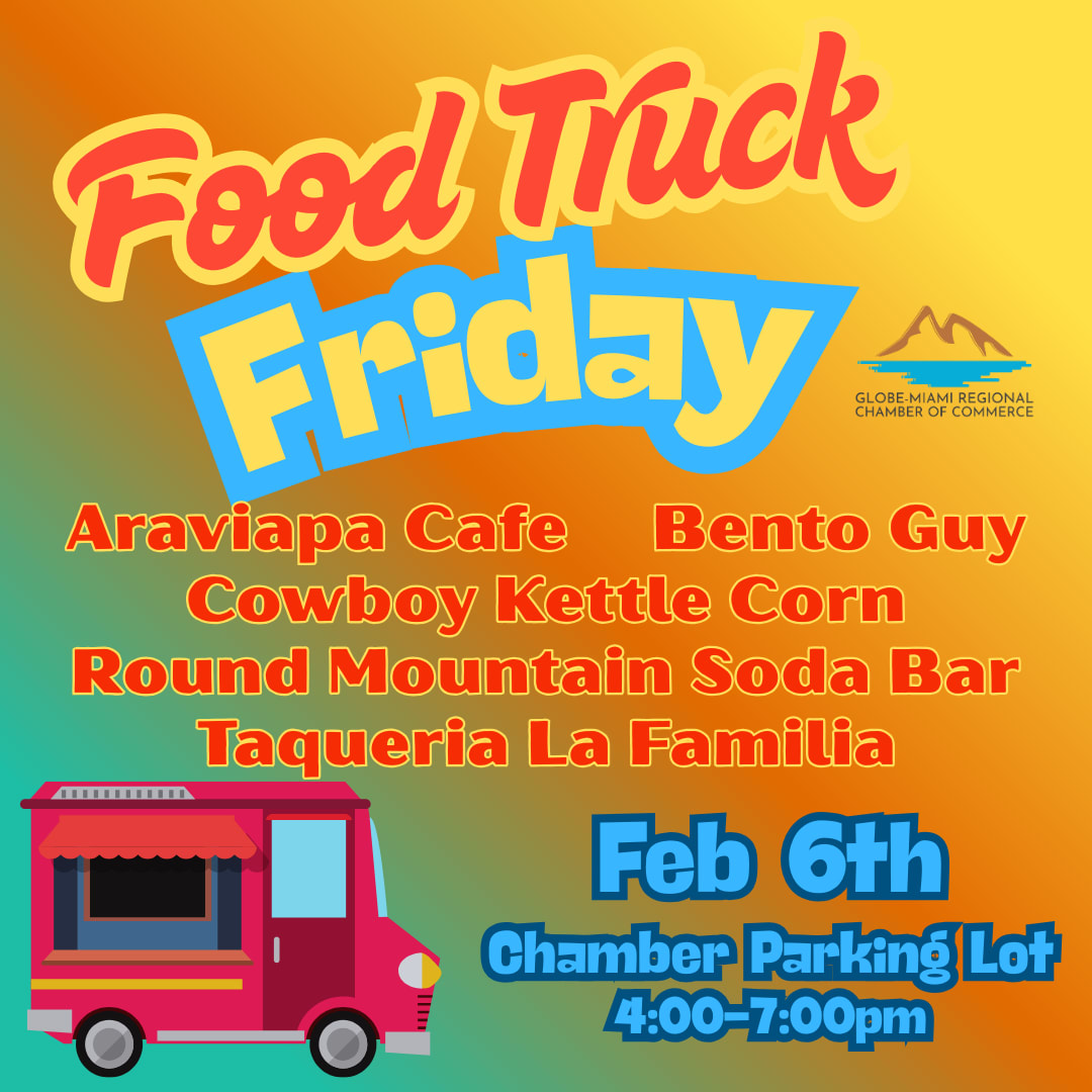 Food Truck Friday is BACK! 🎉 Join us February 6th as we welcome back our mobile food members to the Chamber parking lot. Grab some great food from 4:00–7:00 PM and enjoy a fun evening in the community. Our very own Angel will keep the vibes going as DJ!Images