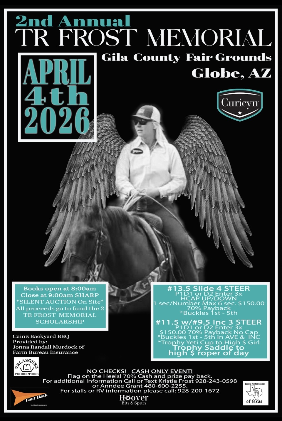 Questions? Call or text Kristie Frost (928)243-0598 or Anndee Grant (480)600-2255. For stalls or RV information call (928)200-1672.